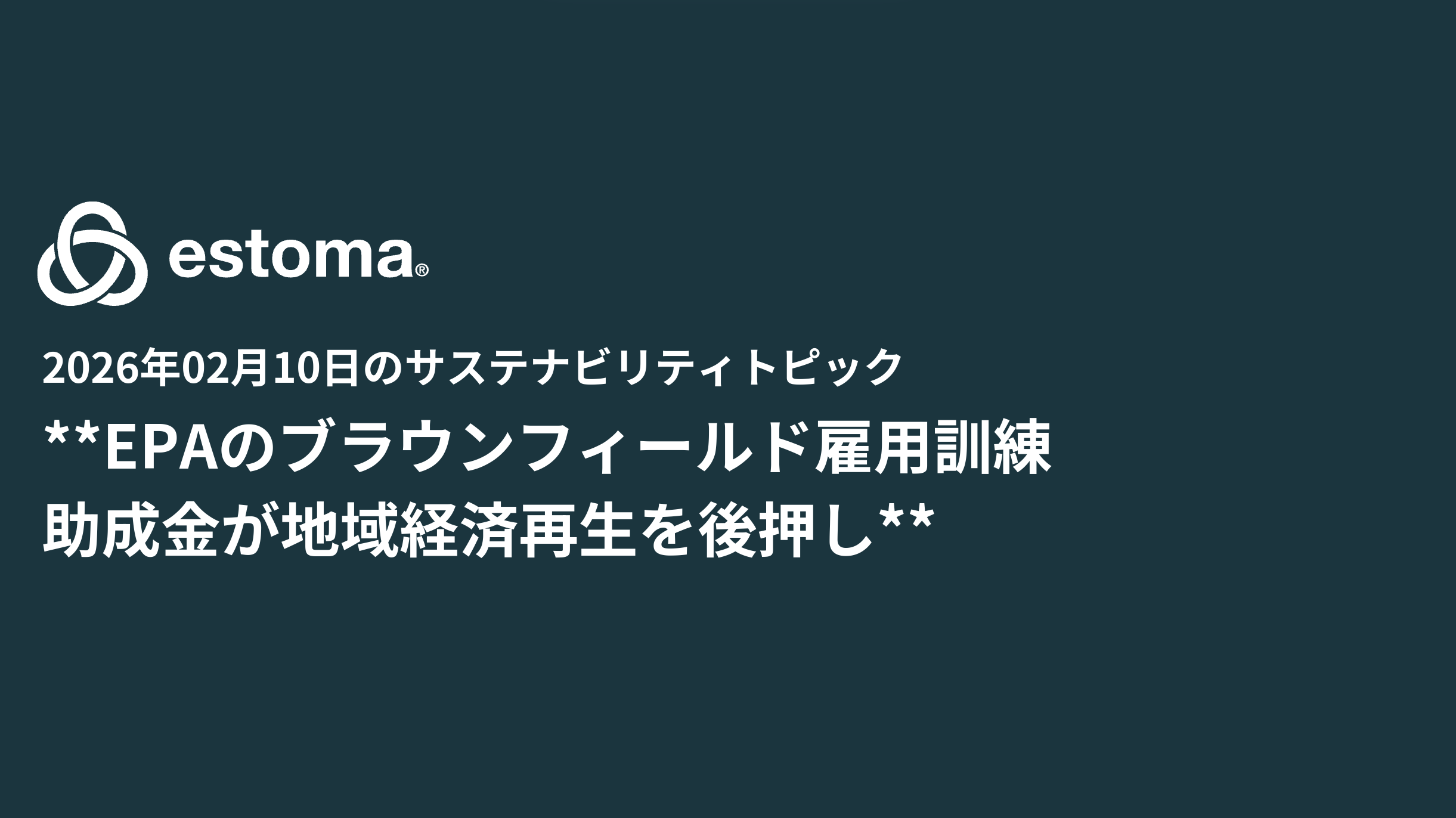 2026年2月10日、サステナビリティ分野では、米国EPAのブラウンフィールド浄化を通じた雇用創出支援が注目を集めました。これらの動きは、環境修復と技術革新が経済・社会課題解決の鍵となることを示しています。本コラムでは、海外の専門機関から発信された最新トピックを厳選し、クライアント企業の戦略立案に役立つ洞察をお届けします。