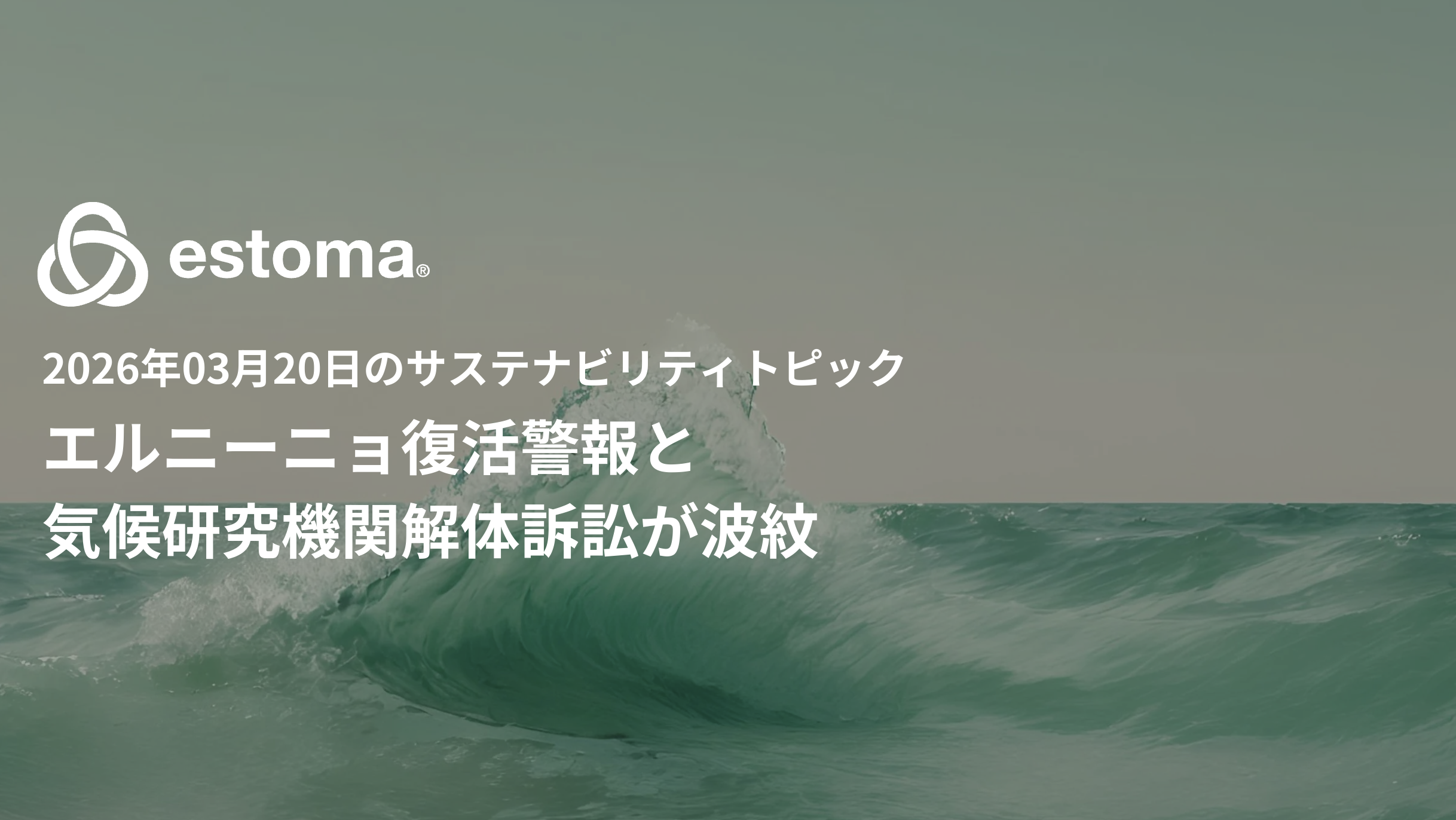 2026年3月20日投稿のサステナビリティ関連記事・ニュースを調査したところ、気候変動の政治的対立や自然現象の再来、企業持続可能性イニシアチブが主なトピックとして浮上しました。特に、エルニーニョの2026年復活予測と米トランプ政権による気候研究ラボ解体をめぐる訴訟が、グローバルな気候リスクの複雑さを象徴する動きとして特筆されます。これらは企業サステナビリティ戦略に即時影響を及ぼす可能性が高く、ESGリスク管理の再考を促します。